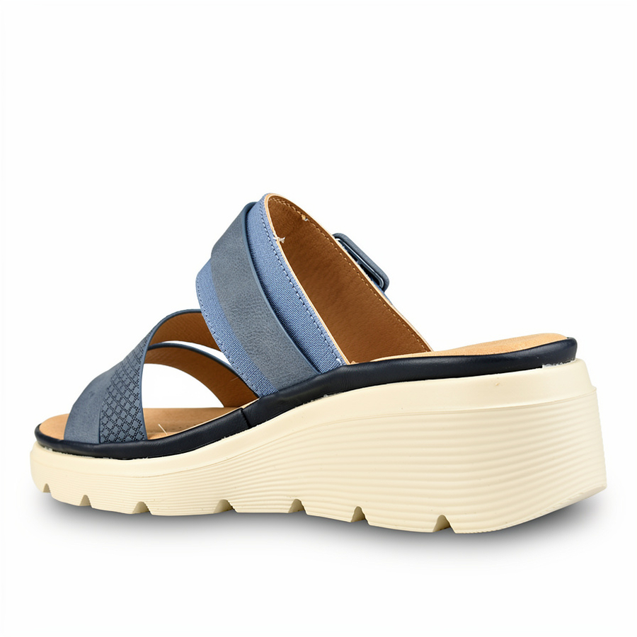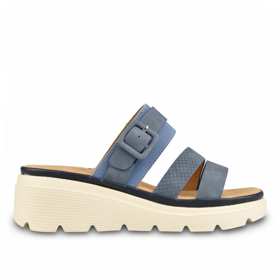 papuci damă piele ecologică/textil albastru 0160266